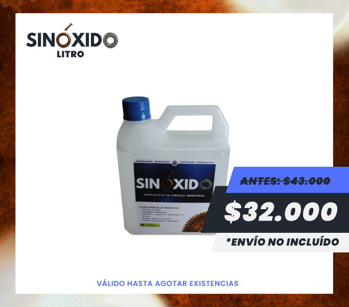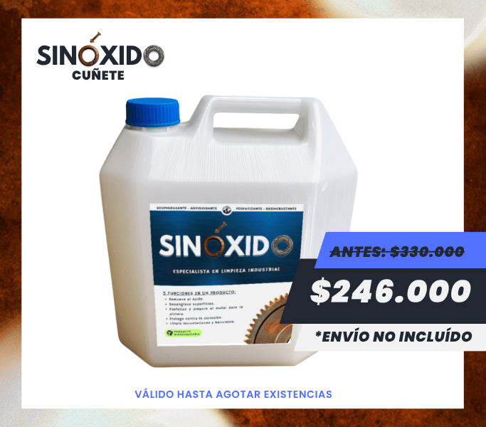 SINÓXIDO ofrece una acción desincrustante innigualable, capaz de eliminar residuos fuertes, costras de óxido, sarro y partículas endurecidas adheridas a superficies metálicas. Es ideal para equipos expuestos a ambientes húmedos, químicos o de alto desgaste.
