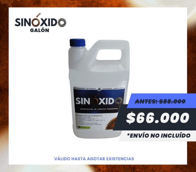 SINÓXIDO actúa como un potente desengrasante industrial, removiendo aceites, residuos y grasa adherida en superficies metálicas con alta eficacia. Su fórmula penetra profundamente para facilitar una limpieza rápida y uniforme.